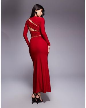 Exclusive Double Layered Slinky Cut Out Back Detail Long Sleeve Maxi Dress
