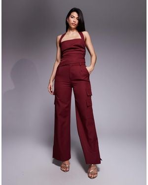 Exclusive Tailored Square Halterneck Ruched Detail Top Co-Ord