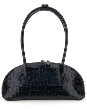 Ew Dome Shoulder Bag With Round Top Handles And Crocodile Effect - Black