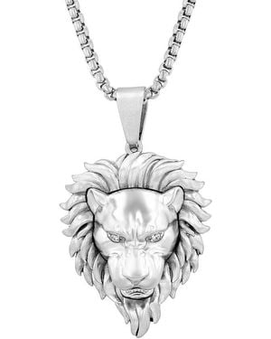 Diamond Accent Stainless Steel Lion Pendant - Metallic