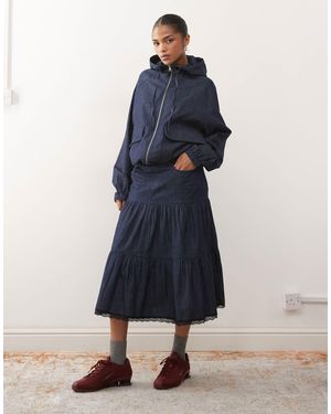 Denim Eyelet Tie Detail Ultra Mini Skirt - Blue