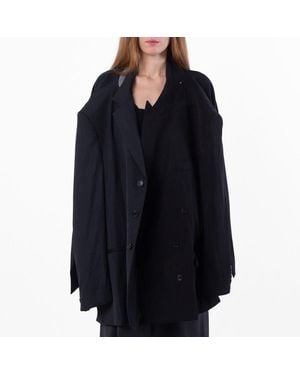 Distressed Double Sleeve Tailored Jacket - Blue
