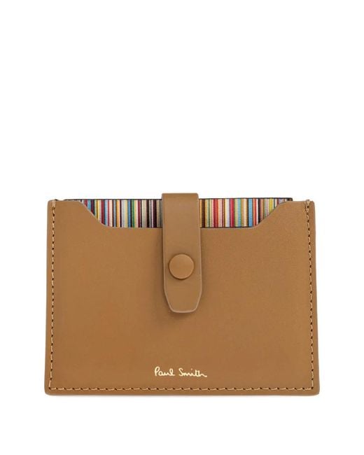 Tarjetero con detalle de rayas y cierre de botón de presión de hombre de color marrón