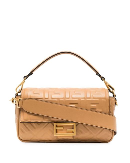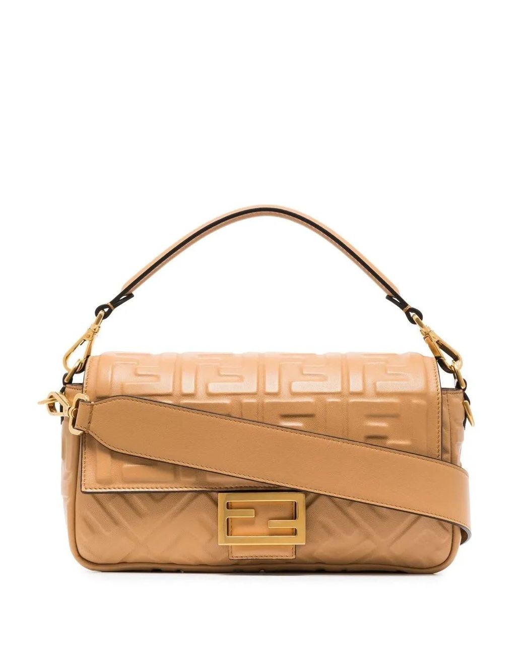 Bolso de hombro Baguette con logo en relieve de mujer de color metálico