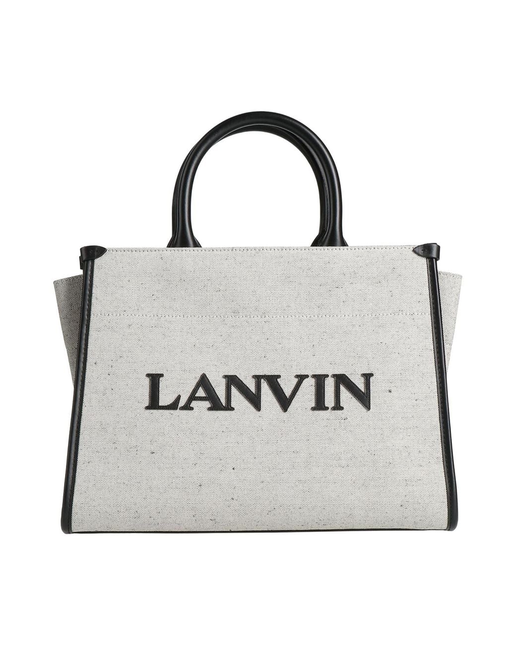 LANVIN. bolso tote, lona, liso con aplicaciones, aplicaciones en piel, logotipo de la marca, interior sin forro, cartera interior extraíble, doble asa, bandolera desmontable, modelo medium, composición con partes de origen animal pero no textil, estilo y confort, ideal para tus próximas vacaciones o un relajante fin de semana junto al mar. 60% Algodón, 40% Lino, Zamak, Latón, Piel de ternera. Color: blanco