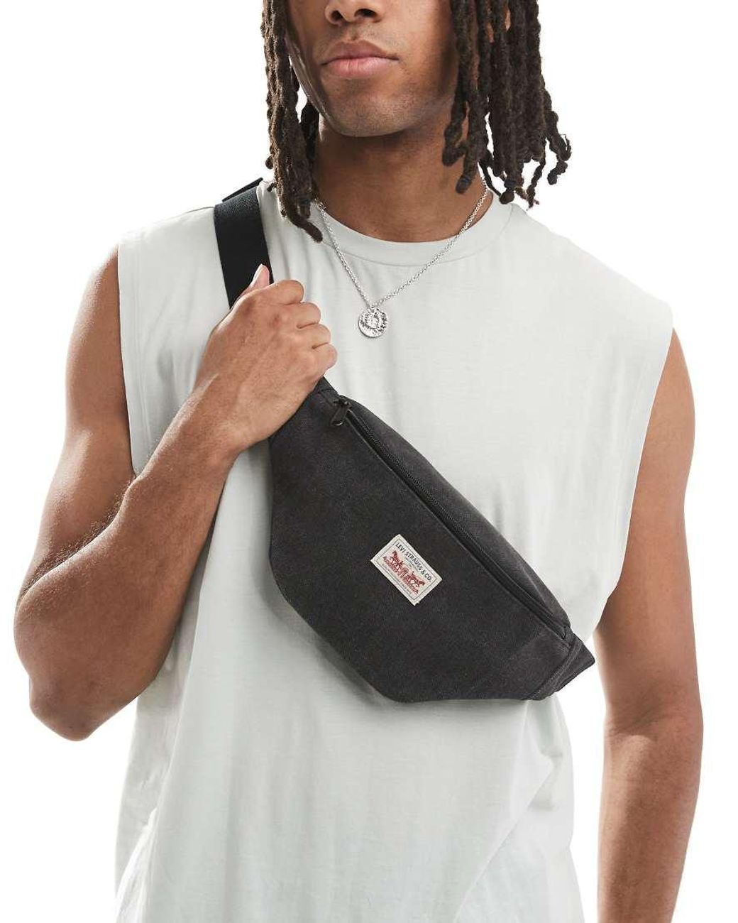 Bandolera Gris Carbón Estilo Riñonera Con Etiqueta Del Logo De de hombre de color marrón