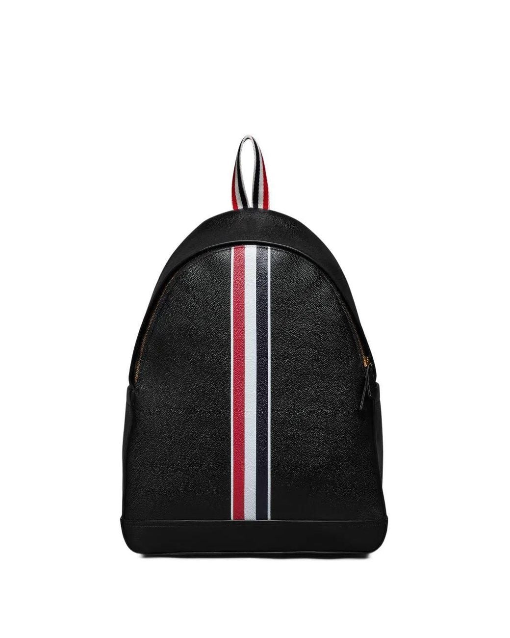 Mochila con múltiples bolsillos y rayas Rwb de cuero granulado granulado de Thom Browne.