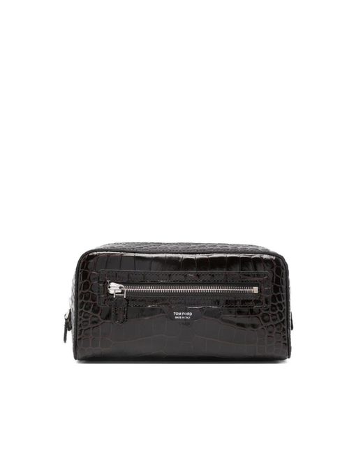 ¡Aprovecha las mejores rebajas! El neceser de cuero con estampado de cocodrilo de Tom Ford combina una silueta rígida y rectangular con piel de becerro con efecto cocodrilo para un almacenamiento y transporte ordenados. Diseñado para organizar accesorios, combina un perfil estructurado con un práctico bolsillo exterior con cremallera. Características principales: Negro | Marrón | Piel de becerro | Perfil rígido | Forma estructurada | Bolsillo exterior con cremallera | Cierre superior con cremallera metálica | Interior sin divisiones para un almacenamiento flexible | Forma rectangular | Estampado de cocodrilo | Costuras tono sobre tono | Bordes acabados | Dimensiones y ajuste: Ancho: 23 cm x Alto: 13 cm x Profundidad: 8 cm | Talla única | Composición y cuidado: 100% piel de becerro Color: negro