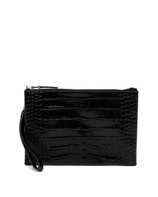 Bolso de mano con efecto de piel de cocodrilo de hombre de color negro