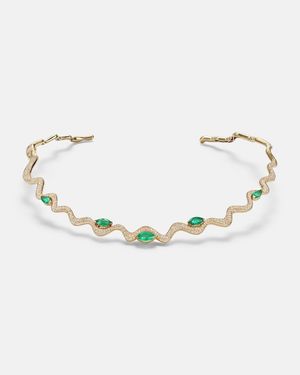 Collar Wave De Oro De 18 Ct Con Esmeraldas Y Diamantes - Metálico