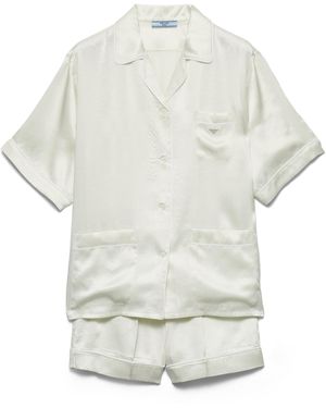 Pijama De Satén Con Aspecto Vintage Con Pantalones Cortos Mujer, Talla - Blanco