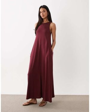 Vestido Largo De Corte Trapecio De Mezcla De Modal De -Rojo - Rojo