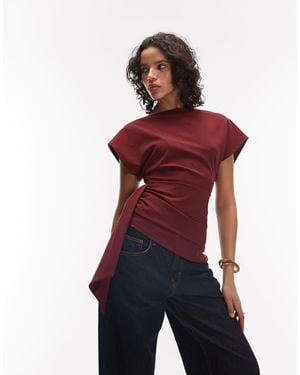 Top Ceñido Con Cuello Desbocado Drapeado De - Rojo