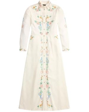 Vestido midi con bordado floral - Neutro