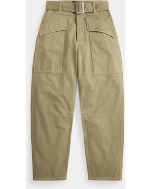 Pantalón Cargo De Sarga En Espiga - Verde