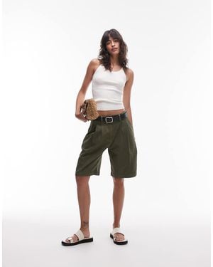 Pantalones Cortos Caquis De Estilo Bermudas Y Talle Medio Con Pinzas De -Verde - Verde