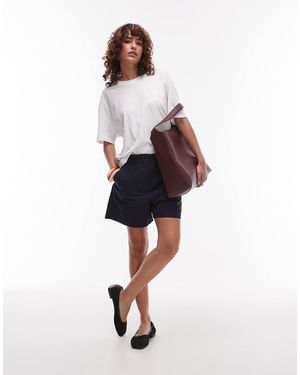 Pantalones Cortos Negros De Estilo Bermudas Con Cinturilla Estilo Sastre De Lino De - Blanco