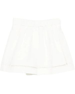 Pantalones Cortos Con Ribete De Encaje - Blanco