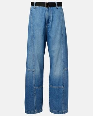 Pantalones Anchos De Denim De Tiro Medio - Azul