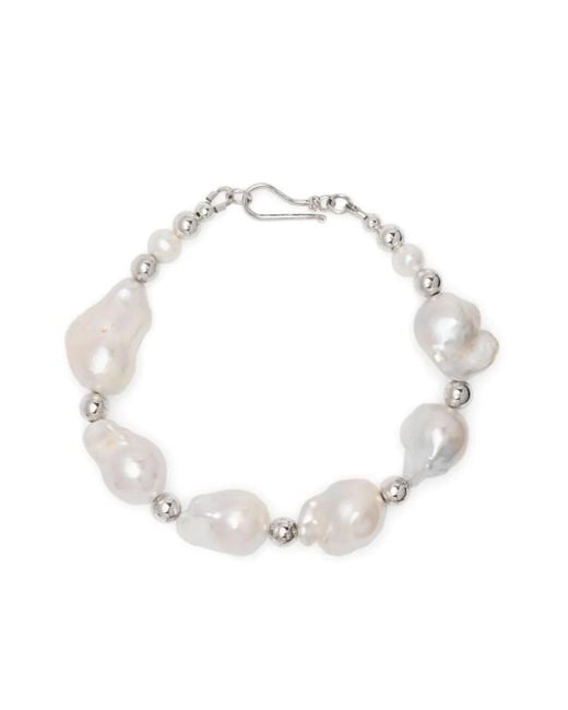 Blanco marfil, plateado, perlas de agua dulce, detalle de cuentas, cierre autoadherente y acabado pulido. Las perlas deben ser lo último que te pones por la mañana y lo primero que te quitas por la noche. Evita que las perlas entren en contacto con perfumes o cremas corporales. Para su limpieza, frota la pieza simplemente con un paño suave. Color: blanco
