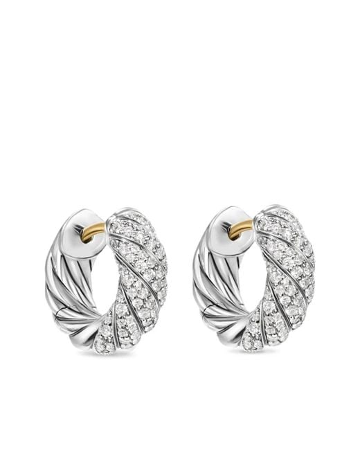 - Pendientes de aro Sculpted Cable de 14.4 mm en plata de ley con diamantes