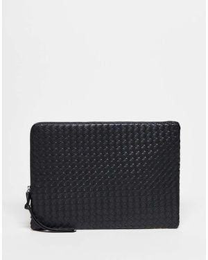 Funda Para Portátil Negra Con Diseño Entretejido De Cuero Sintético De - Negro