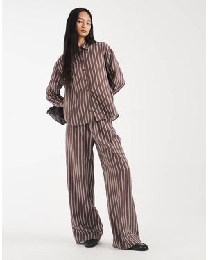 Pantalones Marrones A Rayas De Pernera Ancha De (Parte De Un Conjunto) - Marrón