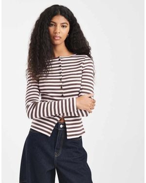 Cárdigan A Rayas Rosas Y Marrones Con Botones De - Azul