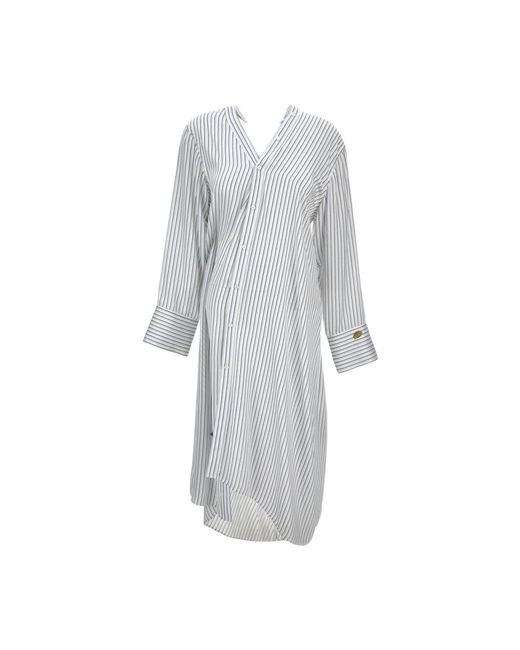 El vestido camisero asimétrico de Acne Studios le da un toque contemporáneo a un clásico vestido camisero con un frente abotonado asimétrico y un detalle de lazada en la espalda, ideal para looks de día elegantes. Atributos clave: Azul | Azul claro | Viscosa | Cierre asimétrico con botones | Cierre con lazada en la espalda | Detalle de adhesivo con la marca | Escote en V | Manga larga | Estampado de rayas | Silueta asimétrica | Dimensiones y ajuste: Corte regular | Largo por debajo de la rodilla | Composición y cuidado: 100% Viscosa Color: gris