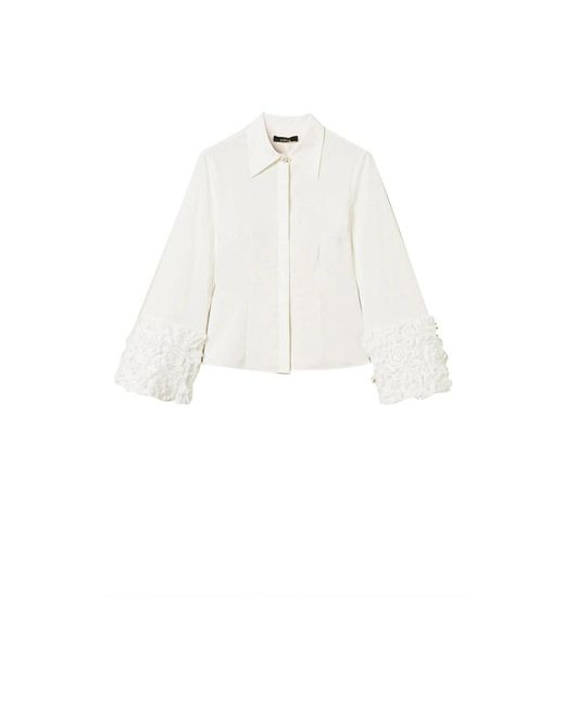 ¡Aprovecha las mejores rebajas! La camisa Actitude de popelina elástica de algodón combina una sastrería refinada con puños decorativos de tul y detalles florales tridimensionales para un look elegante y femenino, adecuado para outfits formales o para el día a día. Atributos clave: Blanco | Blanco hueso | Popelina de algodón | Tejido elástico | Cierre oculto con botones | Puños de tul | Apliques florales tridimensionales | Dimensiones y corte: Corte ajustado | Recomendamos comprar una talla más grande de la que usa habitualmente. | Composición y cuidado: Popelina de algodón | Lavar en seco con delicadeza; colgar para secar a la sombra.