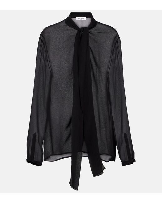 Blusa De Georgette De Seda Con Lazada de mujer de color negro