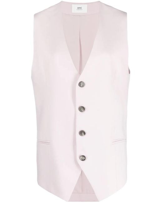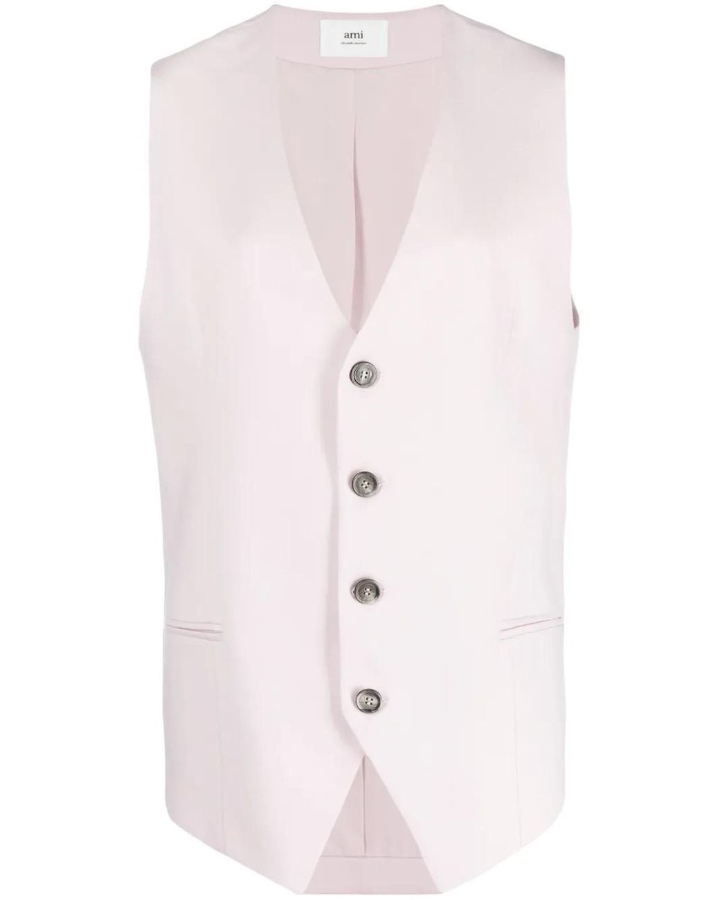 Chaleco Rosa De Lana Con Cierre De Botones, Mujer, Talla