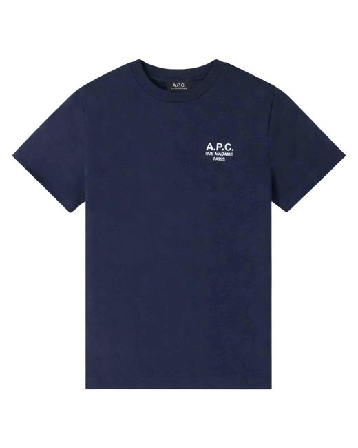 Camiseta A.p.c. Standard Rue Madame: una camiseta minimalista de cuello redondo en algodón de peso pesado, definida por un discreto logo bordado en crudo y un corte recto, fácil de combinar para el uso diario. Atributos clave: Azul | Algodón | Tejido de peso pesado | Duradera | Mantiene la forma después del lavado | Tacto cómodo | Fácil de combinar | Uso diario | Lavable a máquina | Cuello redondo | Manga corta | Logo bordado en crudo en el pecho | Diseño limpio y minimalista | Dimensiones y ajuste: Pecho: 110 cm (M) | Largo: 68 cm (M) | Corte recto unisex | Fiel al tallaje; elige tu talla habitual | Composición y cuidado: 100% algodón | Lavar a máquina en frío; no secar en secadora. Color: azul