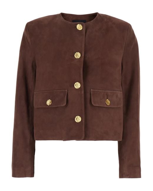 Chaqueta con bolsillo con botón de mujer de color marrón