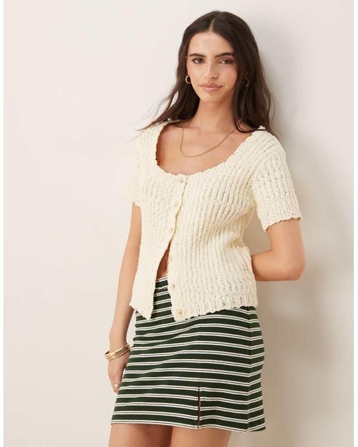 - Cárdigan Con Cuello Ancho Y Botones De Punto De Hilo Texturizado De -Blanco