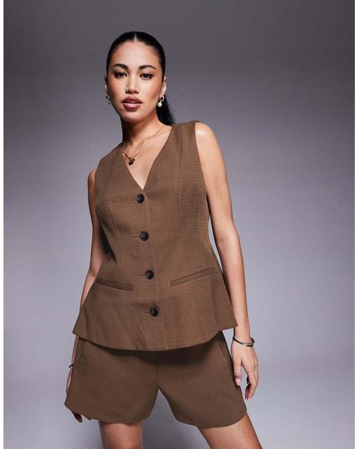 Trajes y prendas sueltas de ASOS DESIGN Cuello de pico Tapeta de botones Detalle de bolsillos Bajo con sobrefalda Corte estándar Color: marrón