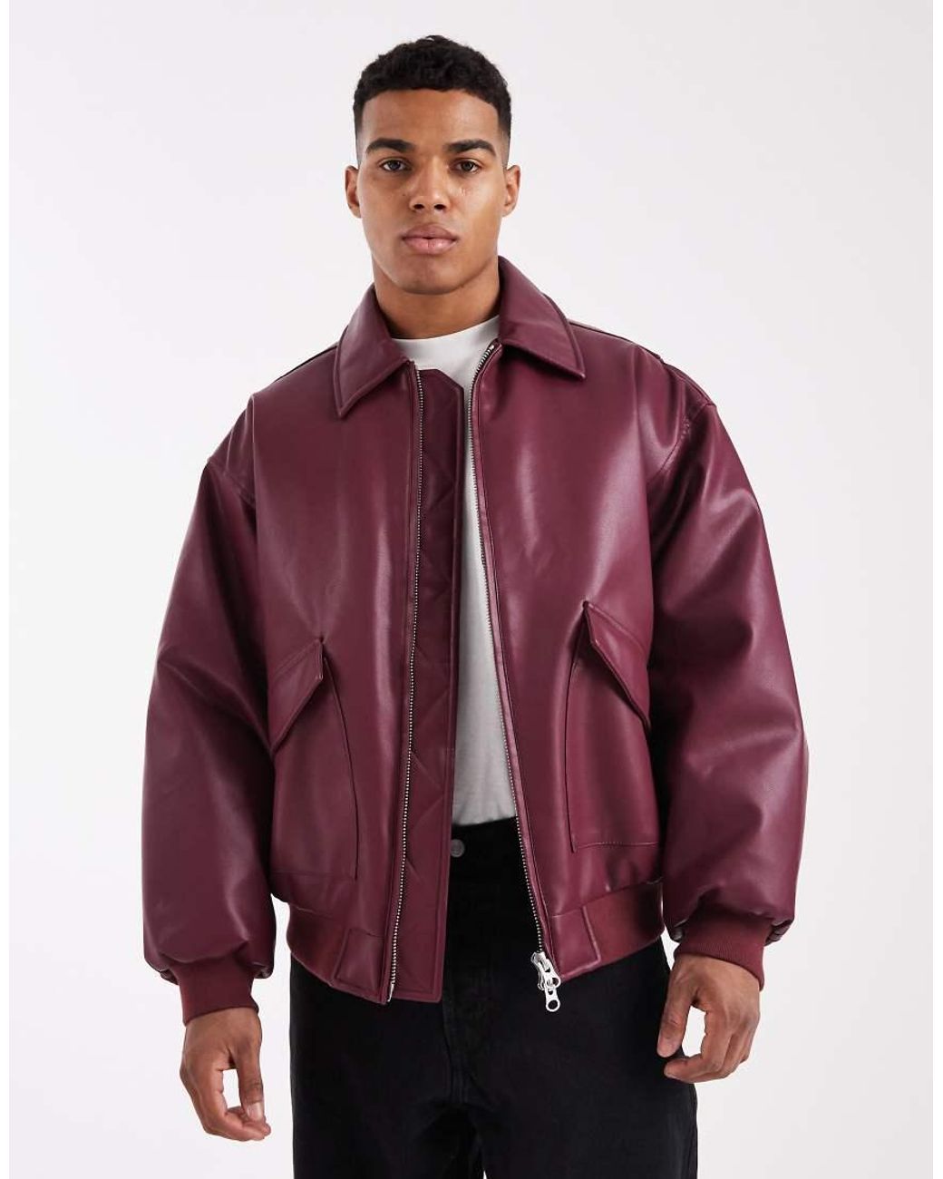 Chaquetas y abrigos de ASOS DESIGN Diseño liso Cuello italiano Cierre de cremallera Dos bolsillos con solapa Puños y bajo de canalé Corte cuadrado Color: morado