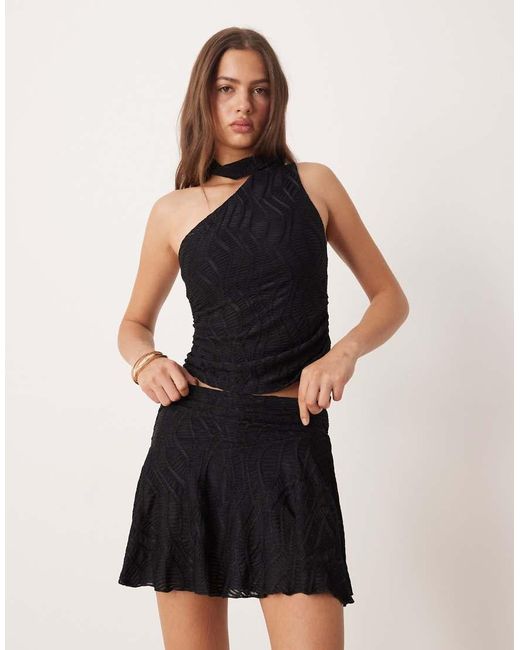 Minifalda Negra Con Vuelo Y Cintura Fruncida De Tejido Texturizado De (Parte De Un Conjunto)