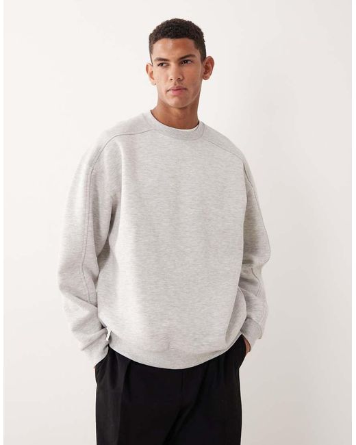 Sudadera Gris Jaspeado Extragrande Con Cuello Redondo De Tejido Grueso Efecto Neopreno De - Blanco
