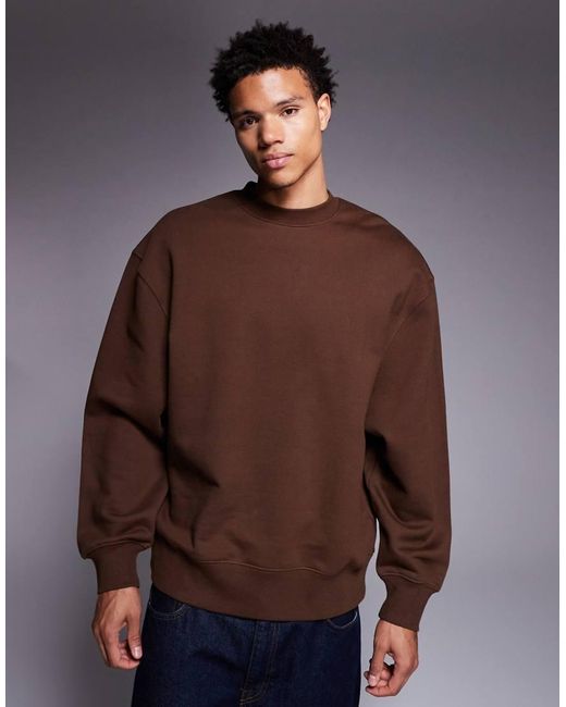 Sudaderas con y sin capucha by ASOS DESIGN Cuello redondo Manga larga Sisas caídas Corte extragrande Color: marrón