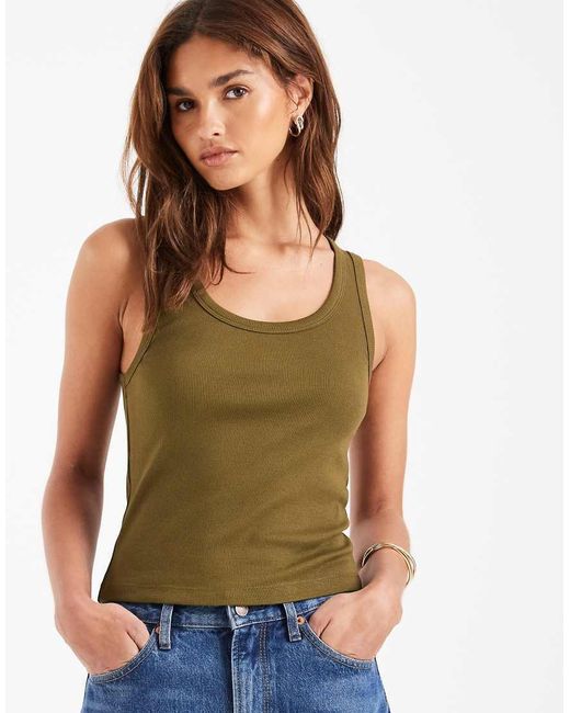 - Top Blanco Sin Mangas Con Cuello Ancho Y Ribetes Gruesos De Canalé De -Verde