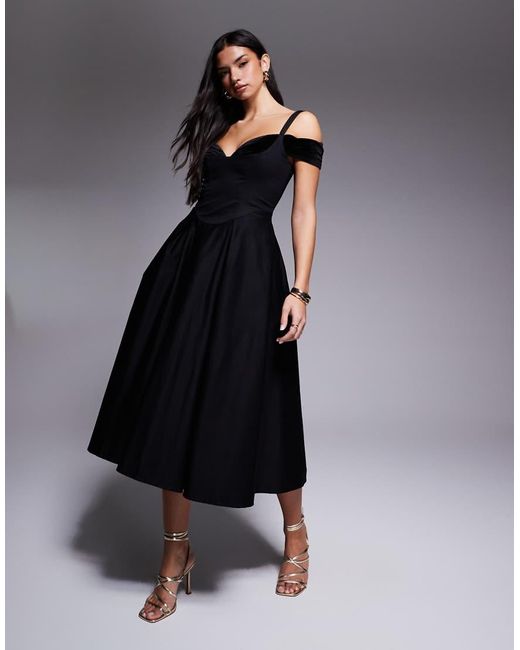 Vestidos de ASOS Luxe Escote en forma de corazón Tirantes fijos Mangas cortas Detalle de terciopelo Cierre con cremallera en la espalda Corte estándar Color: negro