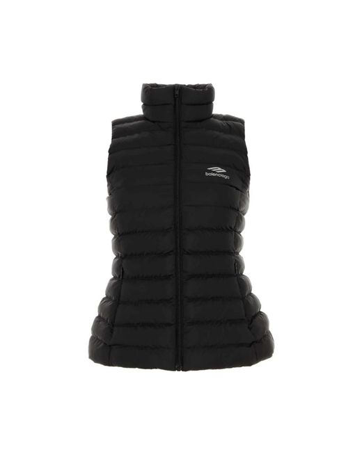¡Aprovecha las mejores rebajas! Chaleco acolchado para mujer de Balenciaga con estampado del logo en el pecho. Cuenta con cuello alto, cremallera frontal, diseño sin mangas y dobladillo recto. Colaboración con Good On You para una evaluación ética. Obtuvo una alta calificación en estándares ambientales, sociales y de bienestar animal. Color: negro