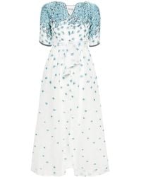 Baruni Vestido Rula con apliques y manga farol de mujer de color azul