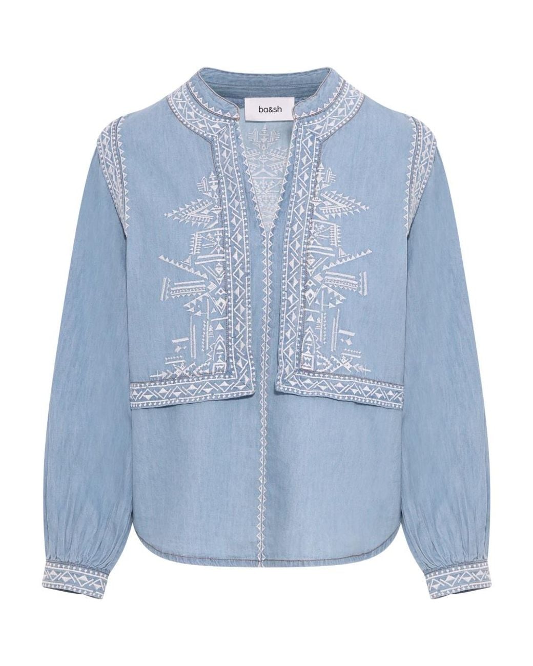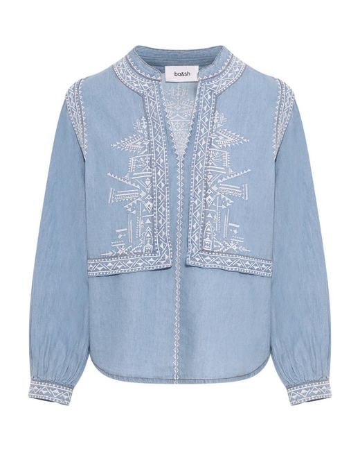 ¡Aprovecha las mejores rebajas! La blusa Laura de Ba&Sh es una blusa ligera de cambray con paneles bordados en la parte delantera y trasera que crean un aspecto de capas dos en uno sin volumen adicional. Su cuello mao con una abertura en V profunda y mangas ligeramente abullonadas le dan una silueta refinada y ponible para la primavera y el verano. Atributos clave: Azul | Blå | Algodón | Ligera | Tejido transpirable | Mangas con puños | Panel tipo chaleco con efecto de capas sin volumen añadido | Cambray ligero con aspecto de denim | Paneles bordados en la parte delantera y trasera | Cuello mao con abertura en V profunda | Mangas ligeramente abullonadas con puños | Silueta recta y relajada | Dimensiones y ajuste: Corte recto y relajado | Composición y cuidado: 100% algodón Color: azul