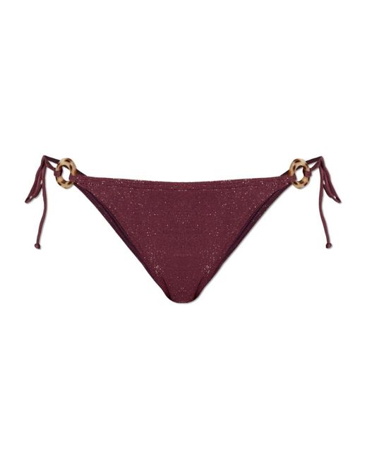 El Ring Tie Side Vista Brief de Bond-Eye es una parte de abajo de bikini de tiro bajo que combina laterales con lazos ajustables con anillos laterales decorativos para un look refinado y minimalista. El tejido micro arrugado incluye lurex para un sutil brillo integral. Atributos clave: Rojo | Burdeos | Nailon | Tejido elástico con recuperación superior | Acabado sutilmente brillante con lurex | Sensación ligera y de apoyo | Laterales con lazos ajustables | Anillos laterales de resina | Cintura baja | Cobertura moderada a descarada | Diseño con lazos laterales | Anillos laterales decorativos con efecto carey marrón/ecru | Acabado minimalista y sin logotipos | Silueta de tiro bajo | Dimensiones y ajuste: Altura de la modelo: 177 cm | Busto de la modelo: 83 cm | Cintura de la modelo: 61 cm | Caderas de la modelo: 89 cm | La modelo lleva la talla: Xs/S | Ajuste de tiro bajo | Talla única: generalmente se adapta de XS a L | Se puede llevar bajo o alto en las caderas | Cobertura moderada a descarada | Composición y cuidado: 85% Nailon | 10% Lurex | 5% Lycra Color: morado