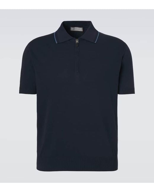 Polo De Algodon Con Cremallera Parcial de hombre de color azul