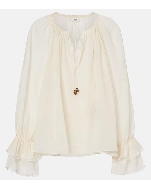 Blusa De Georgette De Seda Con Volantes de mujer de color neutro