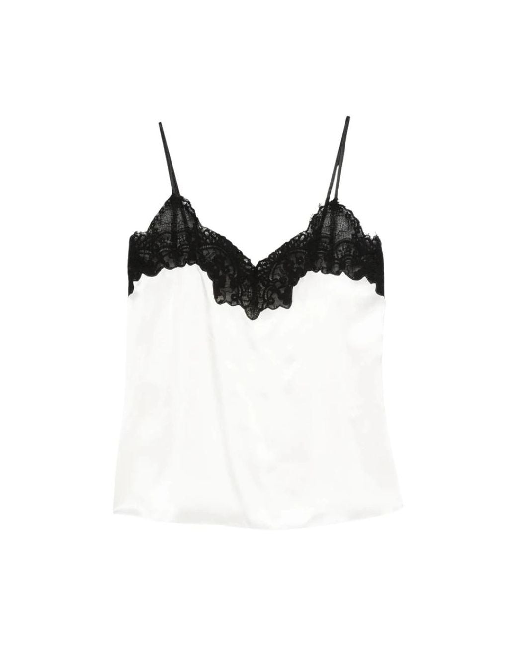 ¡Aprovecha las mejores rebajas! La camisola de encaje de seda CO es una camisola de seda cortada al bies adornada con encaje francés. Es ideal para ropa de dormir o para usar debajo de blazers y cárdigans. Atributos clave: Marfil | Seda | Tirantes finos ajustables | Espalda elástica | Escote con adorno de encaje | Silueta de corte al bies | Detalle de encaje francés festoneado | Dimensiones y ajuste: Corte generoso; considere pedir una talla menos. | Composición y cuidado: 100% seda | Lavar en seco únicamente. Color: negro