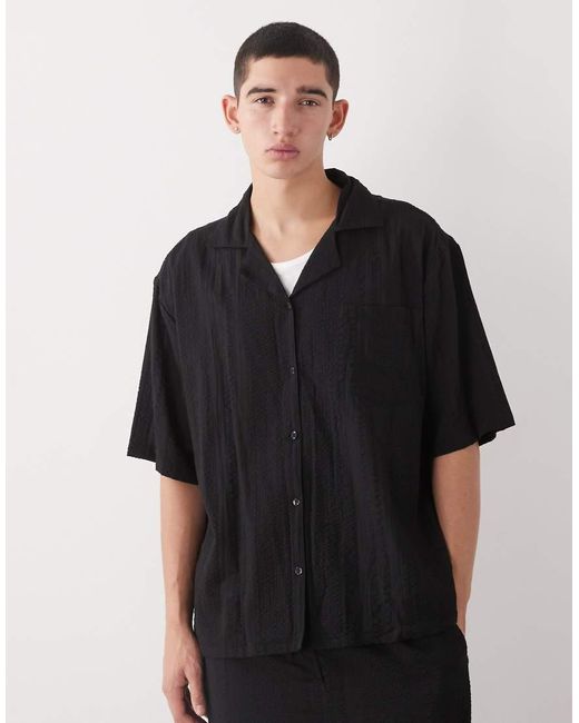 Camisa Negra De Tejido Texturizado De de hombre de color negro